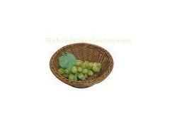 Dark Brown Poly Round Rattan Bread Basket Washable For Display